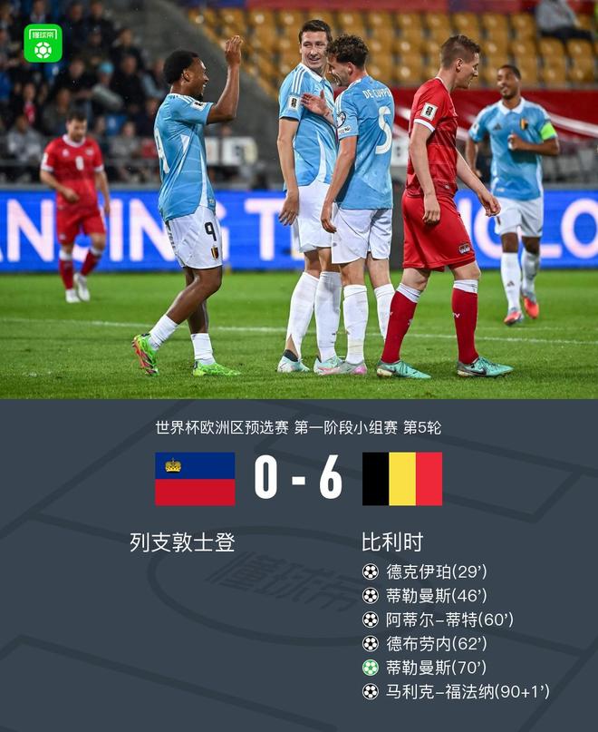 9月5日,Liechtenstein在欧洲世界杯第一阶段的第五轮比赛中面对比利时。比赛开始后,比利时迅速控制了节奏。在第29分钟,Mernier提供了帮助,Dirk Yper借此机会得分并打开了球队的第一张纪录。在第46分钟,Tillermans射门得分,进一步扩大了他们的得分。在第60分钟,Dirk Yper精确地传球,并帮助Atil Tit得分,继续提高他的得分。两分钟后,瓦纳(Vanacan)帮助了脱布林(Debruin)得分,比利时继续扩大其优势。在第70分钟,Tillermans以个人成绩得分两次。当比赛在停赛时间进入时,Salmarks支持了Malik Fofana的得分,Malik Fofana得分最终以6个进球阻止了得分。在比赛结束时,列支敦士登(Liechtenstein)输给了比利时0-6。在关键事件的第29分钟,死点破裂,安德达克·伊珀(Anddark Iper)将球指向死胡同,b在世界波浪的第46分钟,Elgium在第46分钟取得了1-0的优势! Tillermans在拱门的顶部取得了一个凌空比赛,在第60分钟以2-0领先,Crucado Eeper在这座城市得分,比利时在第62分钟从Bruin领先3个进球,Bruin从小角度得分低下,比利时在第70分钟以4-0分的速度领先Belgium 4-0,然后花了4-0分钟。助攻,Fofana取得了强劲的投篮命中率,比利时在一个伟大的时刻以6-0领先,双方的球员进入了球场,比赛开始了很快,Bruin击败了17分钟。分钟,世界浪! Tillermans通过在方舟的顶部得分得分,比利时在60年代以2-0领先,Dark Iper在第62分钟的比赛中领先三个进球,Bruin从低角度射门得分低,比利时在第70分钟的4-0分钟领先4-0分,然后Belgium s sall and fort fort。射击在技术设备对齐统计中以6-0领先