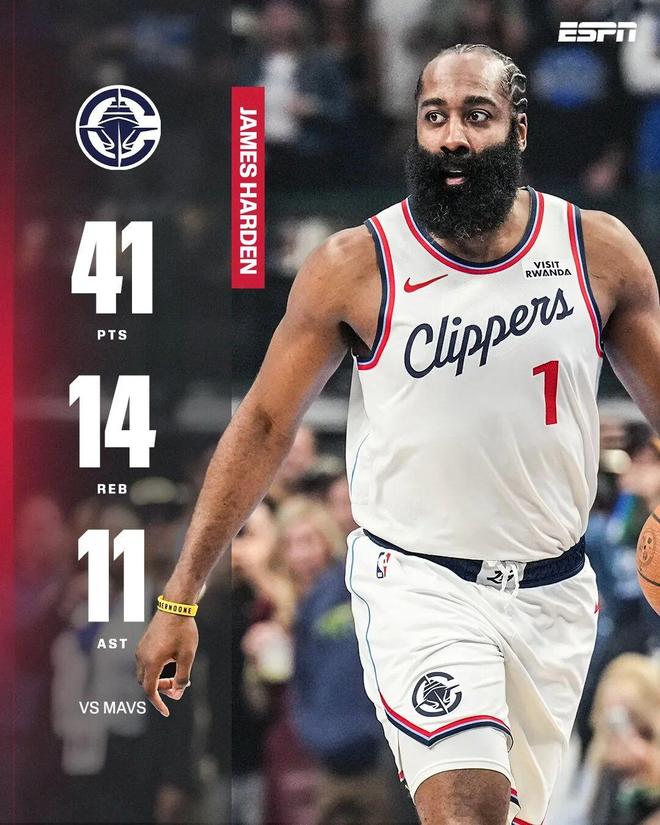 常规赛,快船队在客场以133-127击败小牛队。哈登在这场比赛中打出了本赛季最好的表现。他出战51分钟,25投13中,三分球12投6中,罚球11投9中,得到41分14篮板11助攻2盖帽1抢断。这是什么概念?哈登本场比赛: - 得分和篮板数创下赛季新高 - 快船历史上首个40+三双 - NBA历史上最年长的40+三双(36年零81天) - 职业生涯第17次40+三双,历史第二多(罗伯逊22次) - 时光流逝,四年半后又一个40+三双。上一次是2021年3月,当时哈登还在篮网队,在对阵步行者队的比赛中拿下40分10篮板15助攻。本场比赛之前,快船队已经遭遇六连败,需要一场胜利来止住连败,但即使没有欧文、泰妍、P.J.华盛顿以及最近陷入困境的小牛队,快船队仍然快船队想要赢球并不容易。第四节一开始他们就领先13分,但被对手逼入加时赛,两个加时后他们获胜。哈登在加时赛第一分半钟就命中了两个关键三分球,但都陷入了困境。可惜最后一攻被加福德挡出。这就是我们遗憾技术进步如此之大的地方。 NBA的重播技术(Court IQ)很神奇,因为它可以代表球的轨迹。哈登在第二个加时赛中凭借早早的犯规和上篮拿下四分,但这四分不应该被低估。这个加时赛两队都打得不好,尤其是小牛队。还剩四分半钟时,他们仅靠罚球拿下两分。在此期间,拉塞尔犯了很多错误。尽管快船队并未处于最佳状态,但他们依靠哈登的四分和小琼斯的四罚球赢得了比赛。另一个统计数据来自于此哈登的比赛:哈登全场比赛总共出战51分03秒,创下个人常规赛生涯出场时间纪录。博伊之前的纪录是2021年常规赛对阵骑士队的双加时赛中50分30秒。带领球队取得超过40次三双的胜利表明哈登仍然是一个非常优秀的核心,而场均出战51分钟的时间就是快船队目前最大问题的一个完美例子:他们在防守上没有真正的天赋。保罗年纪太大,比尔缺阵,莱昂纳德受伤,博格丹变幻莫测,泰伦卢只能依靠哈登;如果他们能赢下这场比赛,卢就必须向哈登点头。领先时的五次小自杀将使他们追分,科林斯将不必与巴图姆比赛。不知道Ryu在想什么。回到哈登,这个赛季很艰难,但也是一个伟大的赛季。哈登本赛季迄今为止的数据为场均3场均出战5.9分钟,得到25.0分、6.3个篮板和9.1次助攻,三分命中率为46.1%/39.2%/90.8%,真实命中率为64.4%。相比之下,哈登上赛季场均上场35.3分钟,得到22.8分5.8篮板8.7助攻,三分命中率41.0%/35.2%/87.4%,真实命中率58.2%。哈登上赛季已经非常出色,多次单场40+的表现,这是他自2021年以来的最高得分,并再次入选全明星阵容(三年来首次)和NBA最佳阵容(五年来首次)。哈登本赛季变得更加强大。他的得分是离开火箭队以来最高的,他的真实投篮命中率是离开雷霆队以来最高的,他也可能是NBA历史上唯一一位36岁拿下40次或更多三双的球员。不同的是,上赛季上半程哈登有鲍威尔和祖巴茨陪伴,所以快船队打得并不差。他们参加了一场锦标赛下半场伦纳德回归后扳平(最终首轮抢七输给掘金)。本赛季,快船队老了、伤了,鲍威尔被交易,祖巴茨退步,哈登成了爸爸妈妈的后备军。他没能让快船摆脱困境,但他确实尽力了。从数据统计来看,本场比赛是:——哈登在场的情况下,快船每百回合可以得到118.7分,但对阵对手可能会损失4.4分。 ——如果哈登不在场,快船队每百分只能得到101.4分,丢给对手10.1分。尽管哈登远未达到最佳状态,但自从本赛季早些时候腿筋严重受伤以来,哈登在进攻端正处于最佳状态。它在关键时刻富有成效、高效且可靠。本场比赛之前,哈登关键时刻以53.3%的投篮命中率和50%的三分命中率拿下24分。在他职业生涯的这个年纪,没有他不仅没有放慢脚步,反而承担了更大的比赛负荷,状态也改善到了火箭队以来的最佳水平。不管怎样,哈登确实值得赞扬。希望快船能够找到办法减轻哈登的负担,不要浪费他的巅峰岁月。